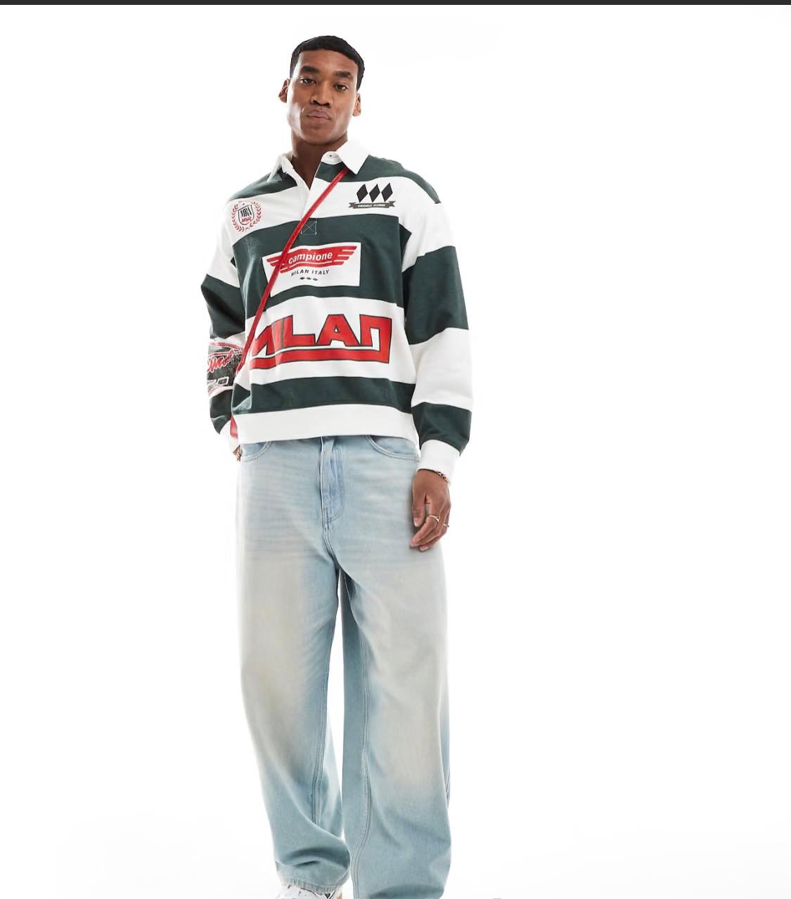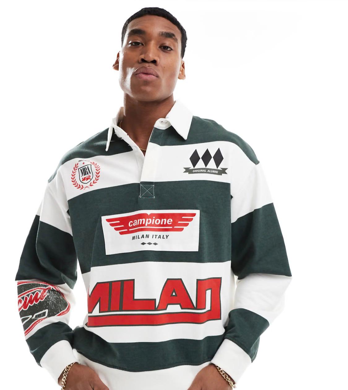 Bershka retro sports rugby polo in green
