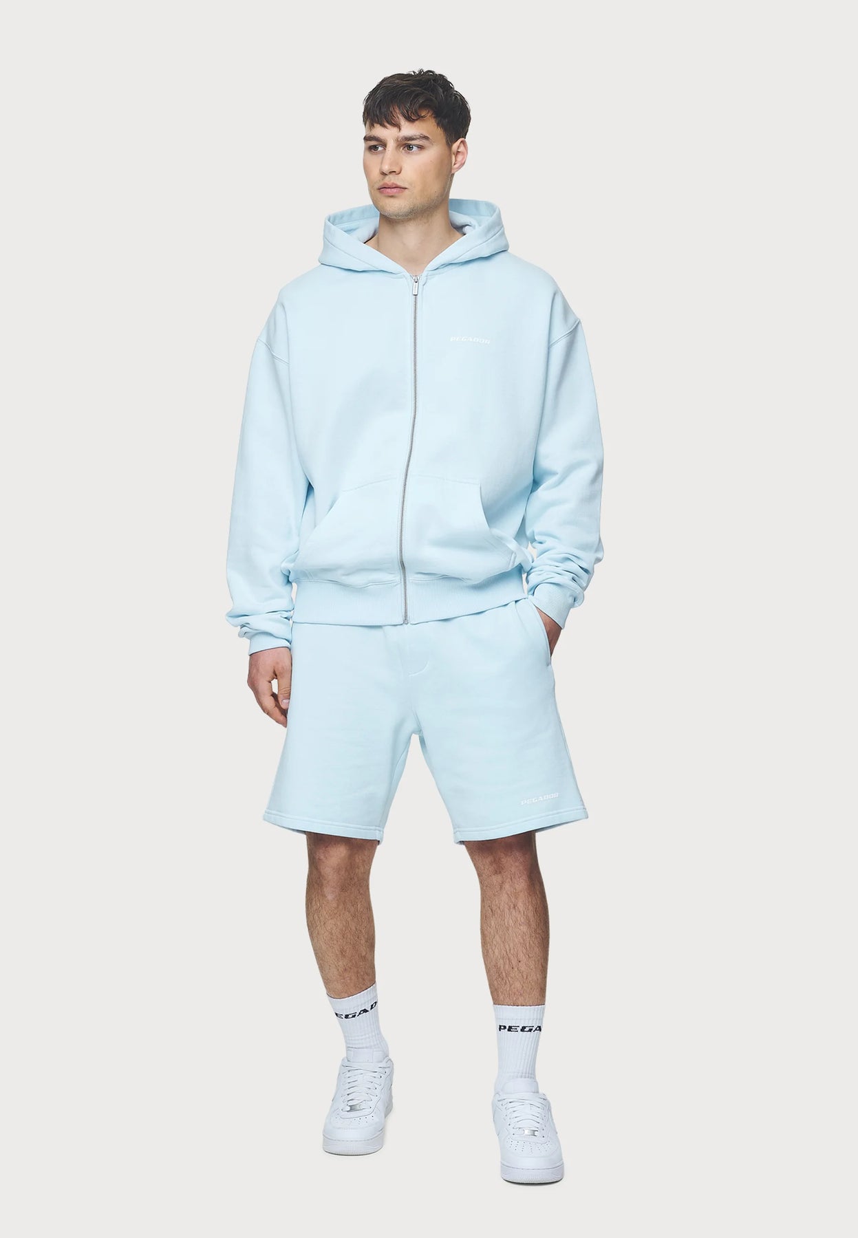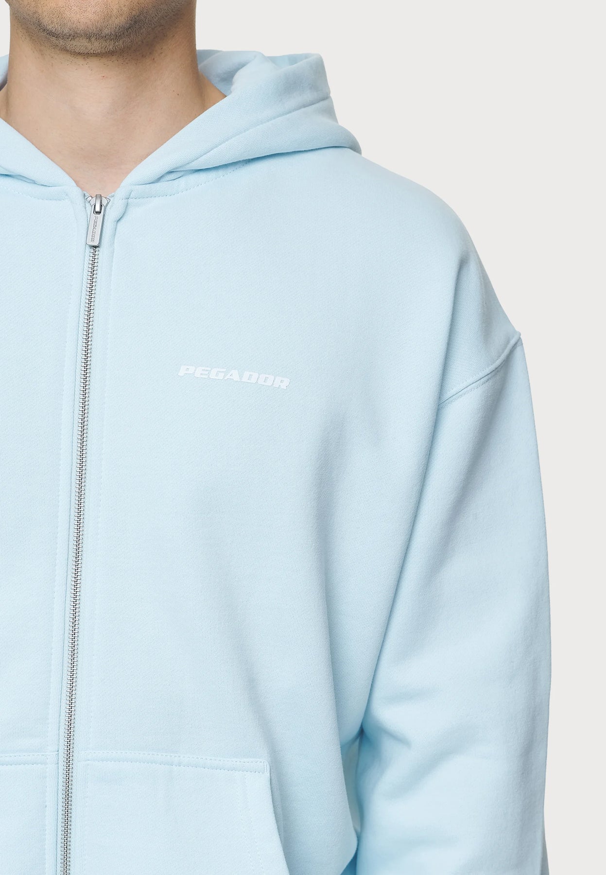 Discover ultimate comfort and style with our LOGO OVERSIZED sweatshirt! Made with 80% cotton and 20% polyester sweat fabric, this zip-up design features a convenient separated hoodie pocket, elasticated waist, and a stylish washed baby blue color. Upgrade your wardrobe today! 💪👕🌟