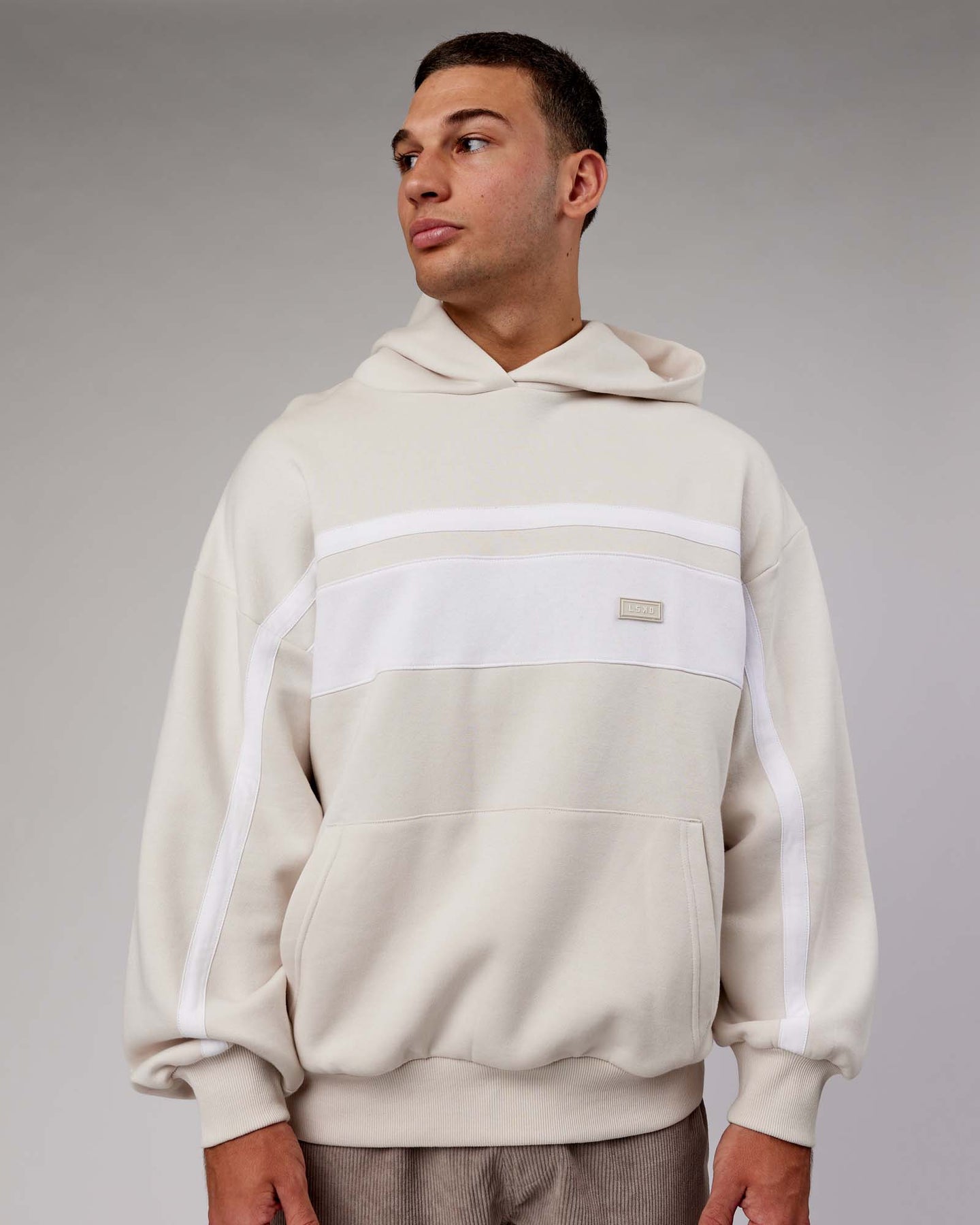 Stay warm and stylish with the Unisex Intercept Hoodie Oversize – Clay-White 😎 Made with super soft fleece fabric and an oversized fit for a street-ready look. Features rib cuffs and hem to keep the cold out, overlap hood, front hand pockets, and contrast panel details. Complete with a rubber chest logo for added style 🔥 #streetstyle #oversized #hoodie